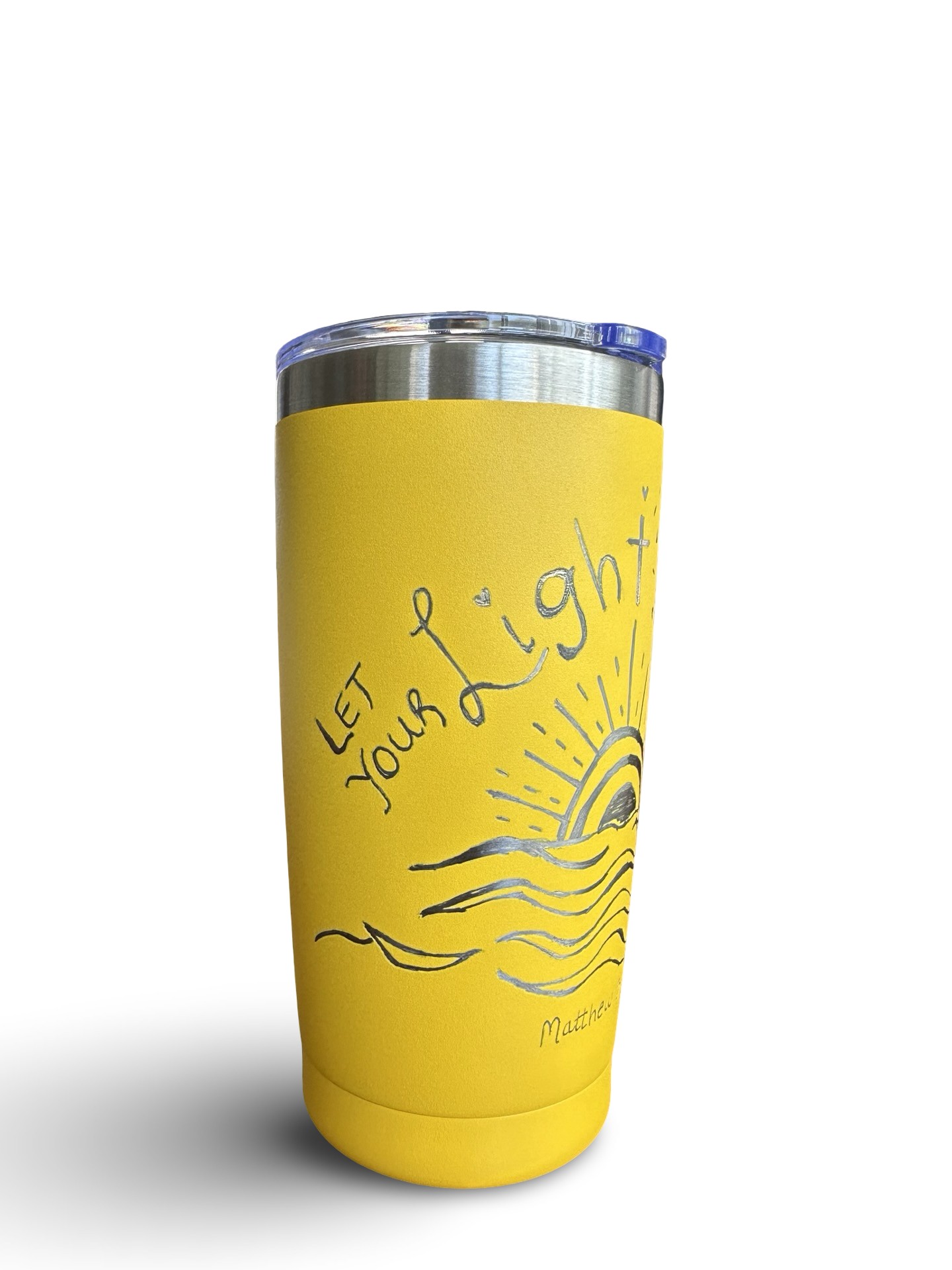 Let Your Light Shine – 20 oz Hand-Engraved Yellow Stainless Steel Tumbler