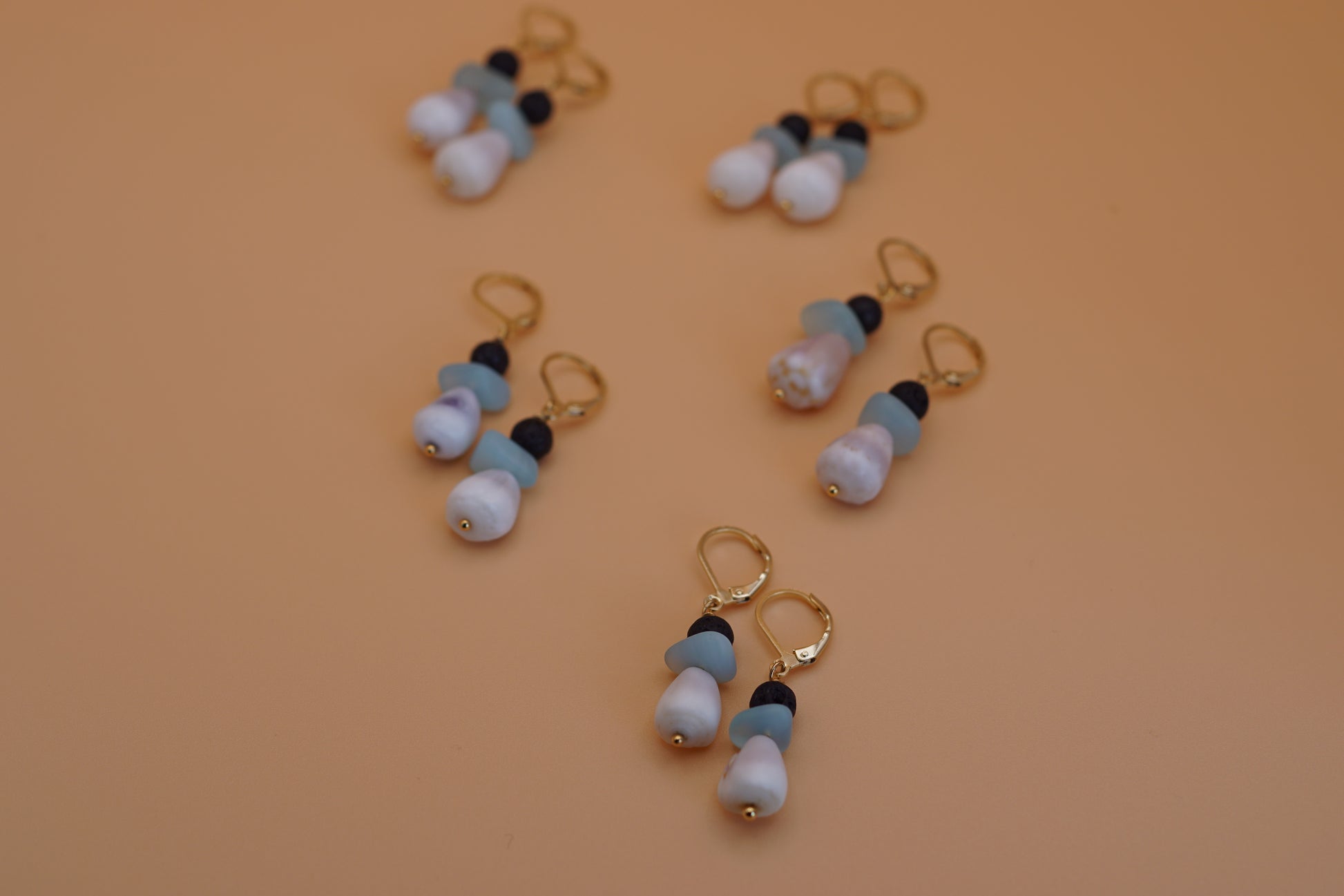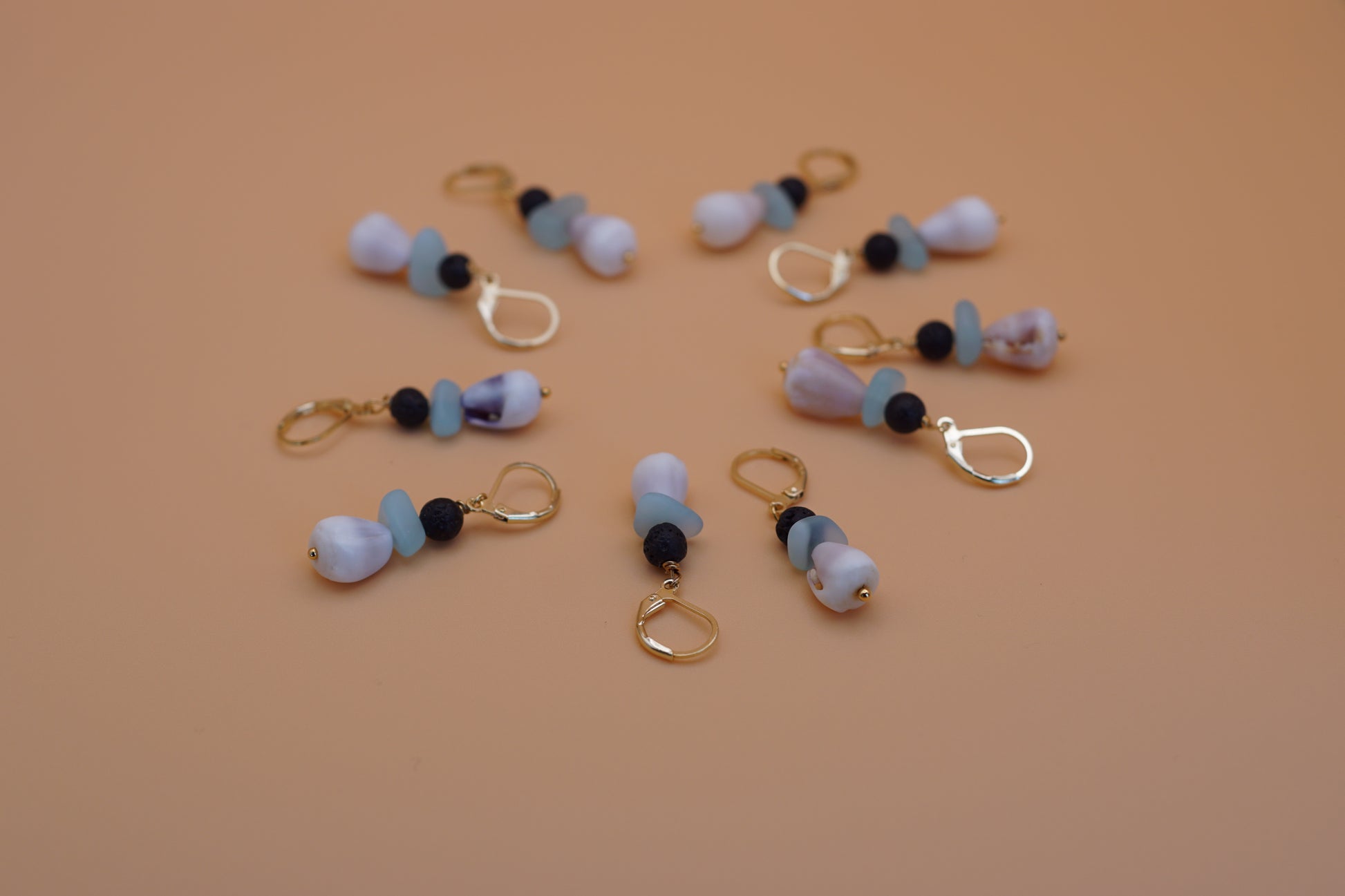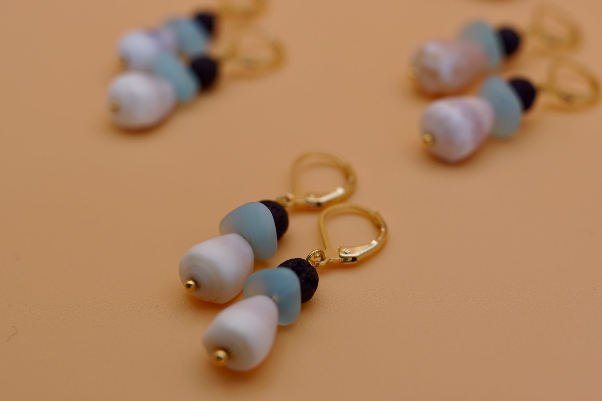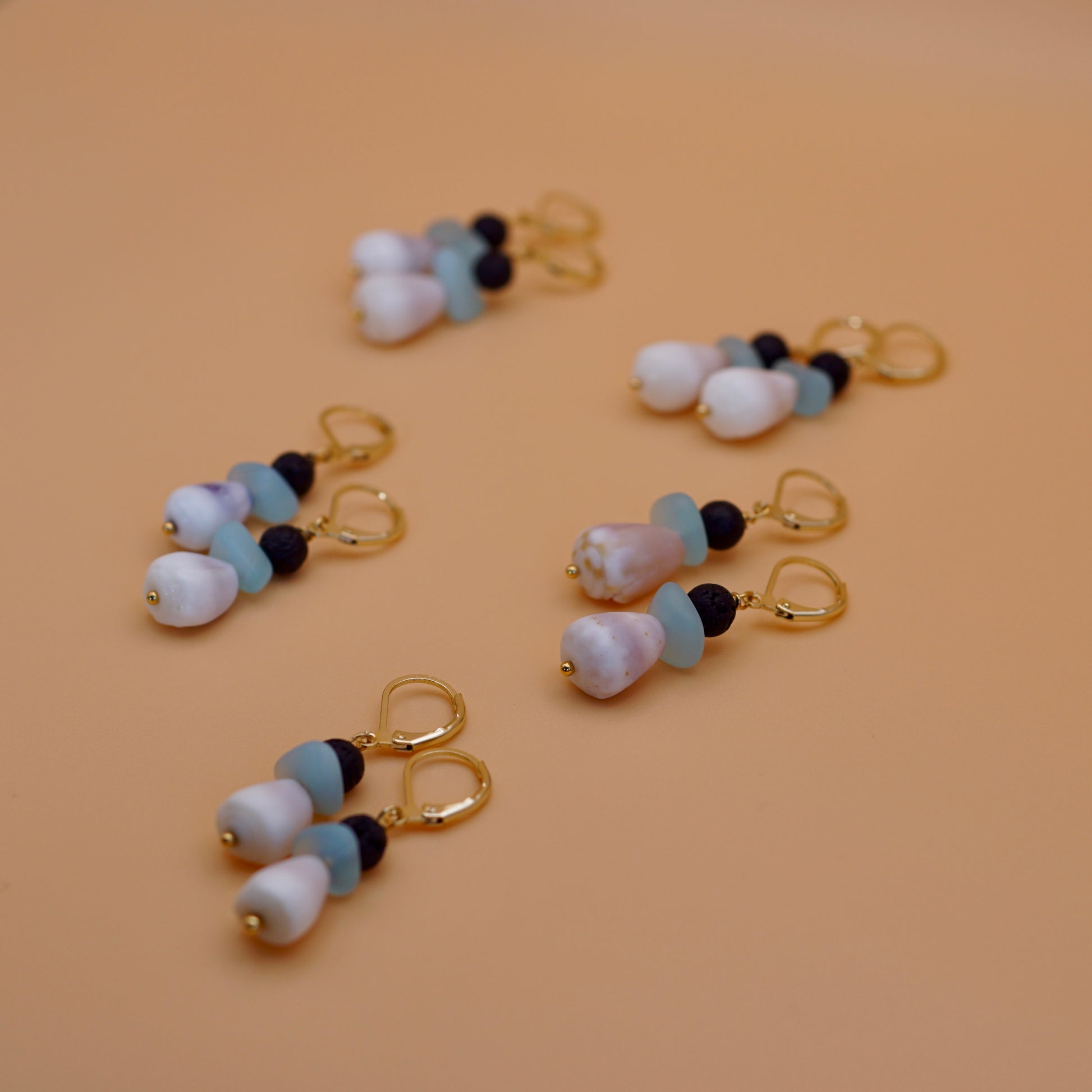 Let your spirit rest in the beauty of creation with the Ocean Drop Hug Earrings. Each pair is thoughtfully handcrafted with handpicked Hawaiian cone shells, naturally smoothed by the ocean’s rhythm, paired with frosted glass beads and grounding black lava stones.
